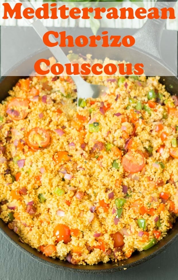 Mediterranean chorizo couscous is a delicious quick healthy budget meal. You'll love the flavours of the smoky sweet lightly toasted couscous. It'll make your taste buds sing!